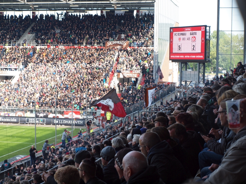 Genauso lange wie es die Kita Piraten-Nest im Millerntor-Stadion gibt (nämlich fünfeinhalb Jahre), gibt es auch die ‚Spieltagsbetreuung‘ an Heimspielen des FC St. Pauli: während die Kinder in den Räumlichkeiten der Krippe betreut werden und dort spielen, toben, malen können, können die Eltern mit oder ohne ihre Kinder das Spiel auf dem großen Balkon der Kita verfolgen.