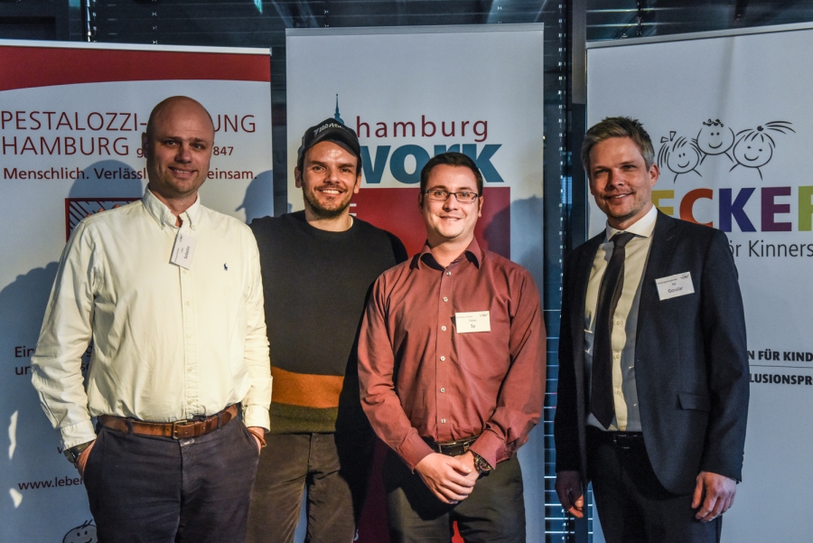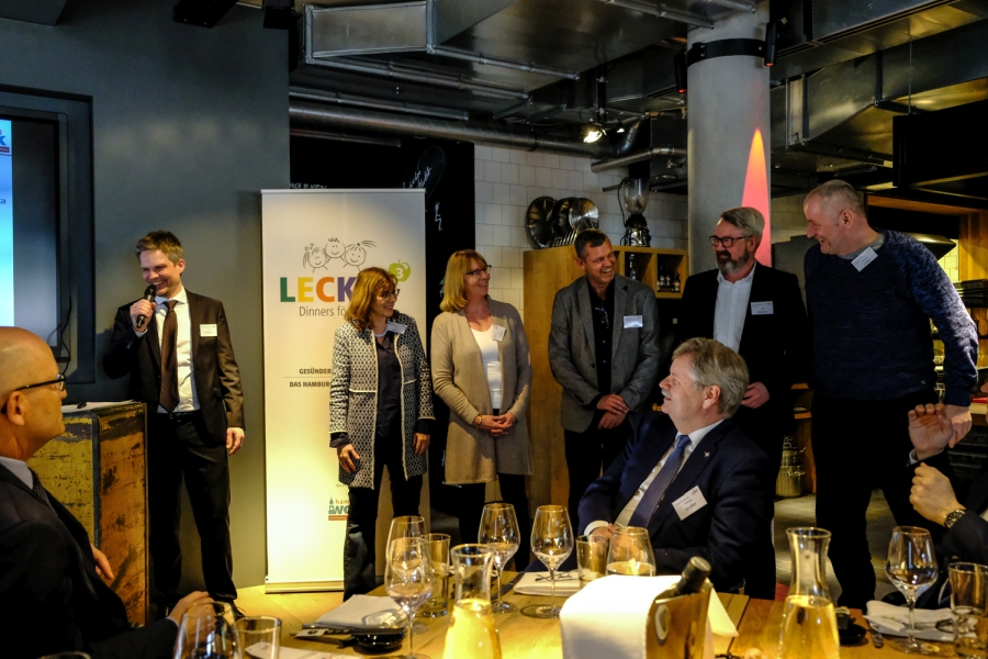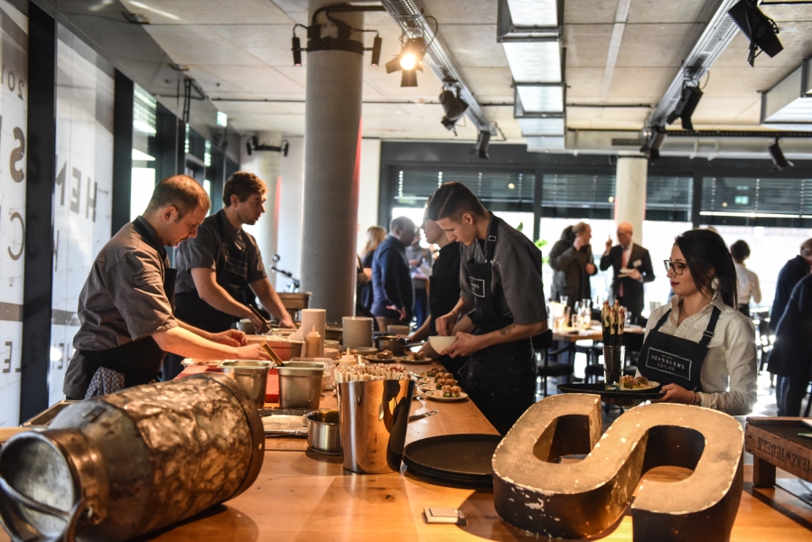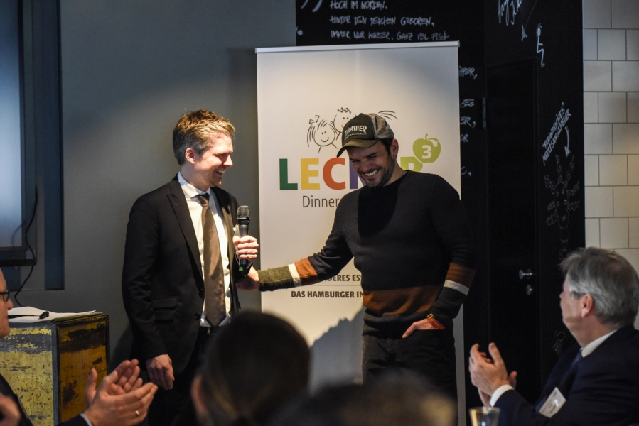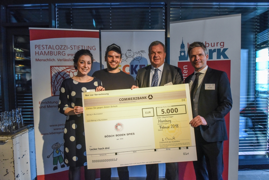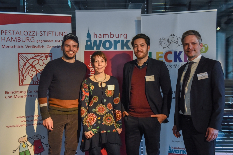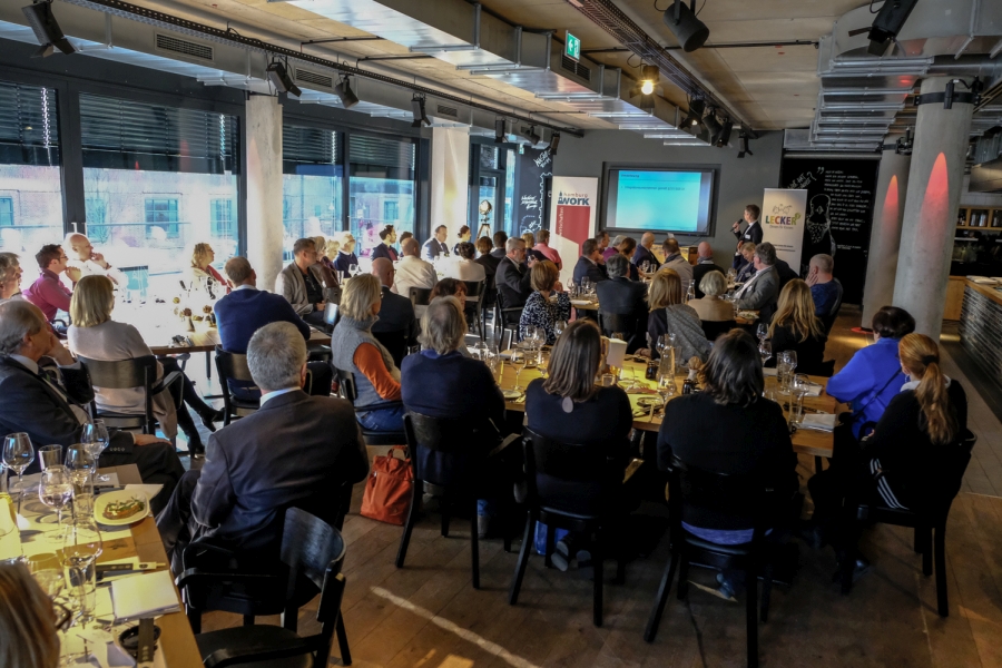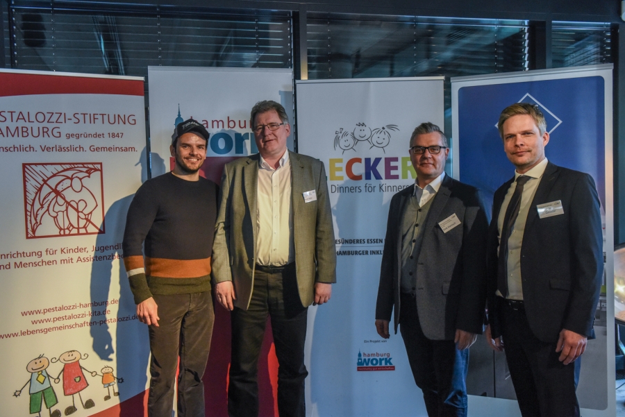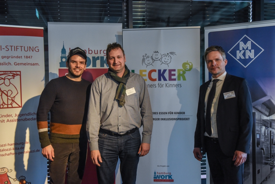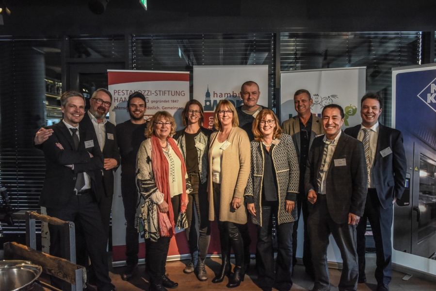 Der Geschäftsführer von hamburg work, Kai Gosslar und Steffen Henssler, der Schirmherr für den neuen Betrieb, begrüßten am 8. Februar 2018 viele Unterstützer für dieses „Leuchtturm-Projekt“ (Silke Schwartau, Leiterin der Verbraucherzentrale Hamburg und Unterstützerin in ihrem Grußwort) zu einen Charity-Lunch in „Hensslers Küche“. Diese hatte sich sehr kreativ auf das Thema eingestellt und servierte u.a. leckere „Pausenbrote“, (Lachs-)Fischstäbchen und Hühnerfrikassee.