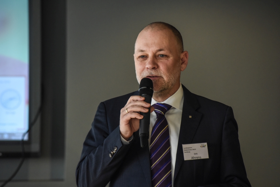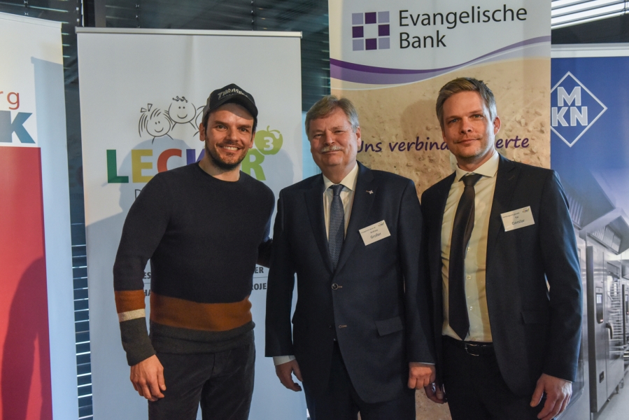 Landespastor Dirk Ahrens ging in seinem Grußwort am praktischen Beispiel des Kindes einer Freundin auf die gelungene Umsetzung der Ansprüche von „Lecker hoch Drei“ ein – gesundes Essen herzustellen, nachhaltig und öko-fair zu wirtschaften. Nicht zuletzt: Menschen, denen es sonst schwer oder gar unmöglich gemacht wird, können ihre Talente und Fähigkeiten einsetzen, bekommen einen Arbeitsplatz und Wertschätzung.