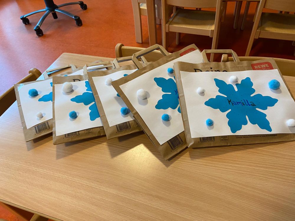 Die Gruppenpädagog*innen verteilen an jedes Kind eine Tüte mit Luftschlangen, Luftballons, Konfetti und diverses Material zum Basteln. Um den Umgang mit der Tüte zu erleichtern, wurde ein Video mit Anregungen zur Nutzung hochgeladen.