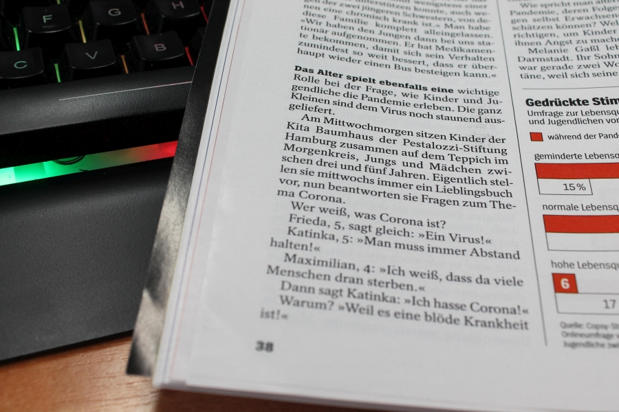 Neben der Perspektive von Teenagern im Familienumfeld, von Familien mit Kindern mit Behinderungen, von Schülerinnen und Schülern, u.v.a.m. kommen auch Kita-Kinder zu Wort – und zwar von Kindern aus unserer Kita Baumhaus in Eppendorf. “Wenn man die Tür aufmacht, kommt Corona rein” meint ein Kind und der Artikel stellt die berechtigte Frage für alle die erziehen und erziehen helfen: Welche Worte sind die richtigen, um Kinder aufzuklären, ohne ihnen Angst zu machen?