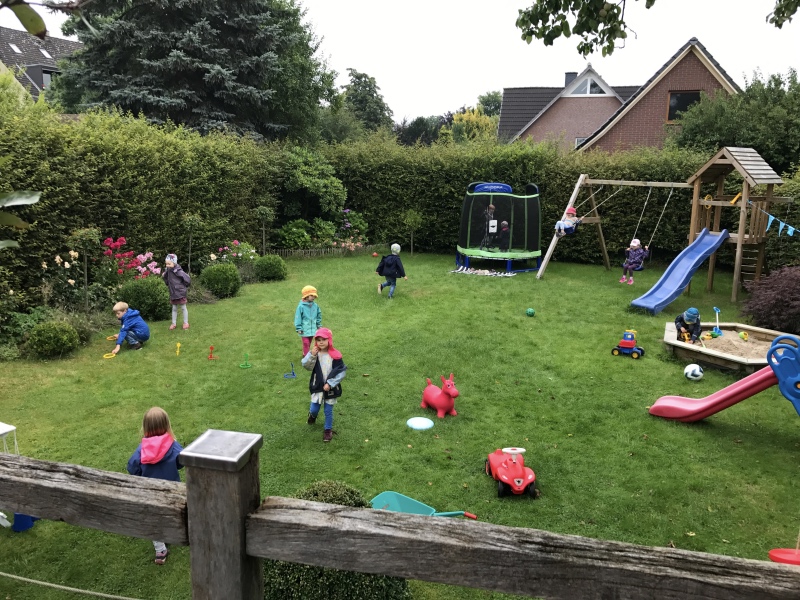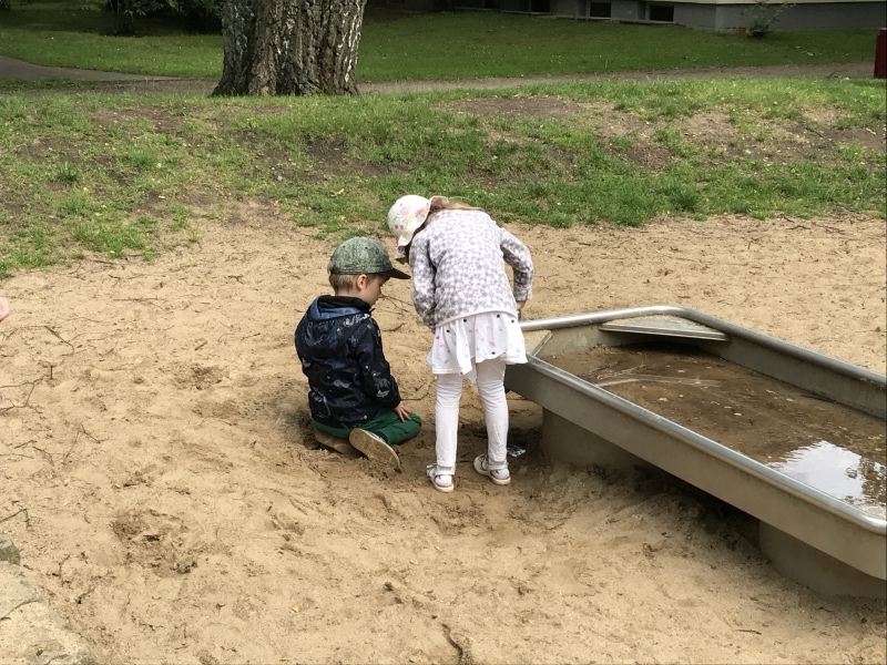 Auf unserem großen Außengelände haben die Kinder viele Möglichkeiten zu forschen, sich zu bewegen und sich selbst und die Welt zu entdecken.