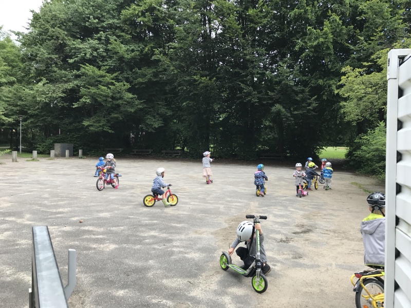 Auf unserem großen Außengelände haben die Kinder viele Möglichkeiten zu forschen, sich zu bewegen und sich selbst und die Welt zu entdecken.