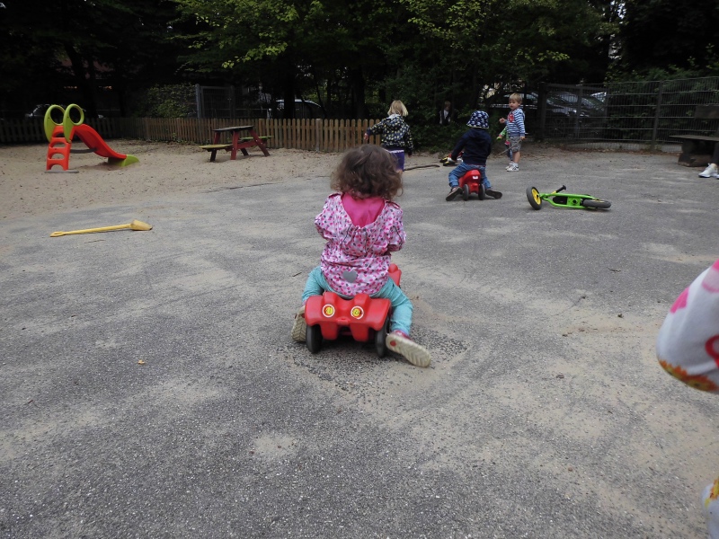 Auf unserem großen Außengelände haben die Kinder viele Möglichkeiten zu forschen, sich zu bewegen und sich selbst und die Welt zu entdecken.