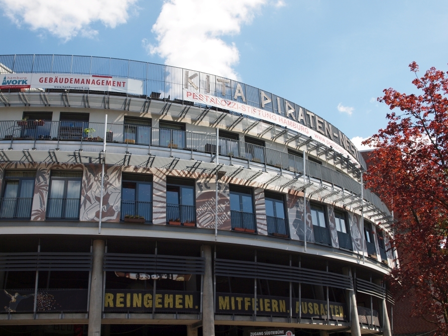 Ihr findet uns, die Kita Piraten-Nest, im Millerntor Stadion des FC St Pauli.