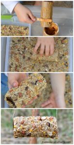 - Klorolle so lange im Vogelfutter wälzen, bis nichts mehr an der Erdnussbutter hängen bleibt