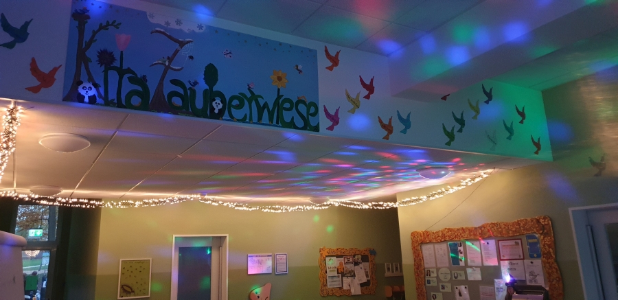 Erstmalig fand in der Kita Zauberwiese ein Lichterfest statt. Die gesamte Kita erstrahlte in einem Lichtermeer. Bei Musik, Kinderpunsch und kleinen Snacks wurde auch gebastelt. Alles unter dem Motto „Lichter, Glanz und Glitzer“.