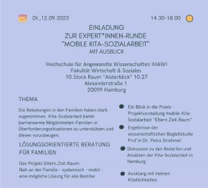 Die Pestalozzi-Stiftung Hamburg hat zusammen mit dem Deutschen Institut für Sozialwirtschaft zu einer Expert*innenrunde am 12.09.2023 in die HAW Hamburg eingeladen. Bei dem fachlichen Austausch dabei waren Vertreter*innen von Sozialbehörde, Netzwerkmanager*innen aus den Jugendämtern aller Hamburger Bezirke und die Diakonie. Prof.’in Petra Strehmel vom Department Soziale Arbeit der HAW Hamburg stellte die Ergebnisse der wissenschaftlichen Begleitstudie vor, nachdem die Berater:innen einen Blick in die Praxis der mobilen, präventiven und systemisch lösungsorientierten Elternberatung gegeben hatten.