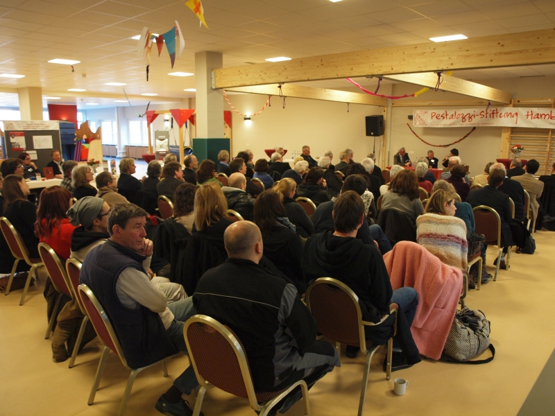 In der von Gerlinde Gehl vom Diakonischen Werk moderierten Veranstaltung berichteten der Autor und die beiden Vorstandsmitglieder der Pestalozzi-Stiftung Hamburg, Jörg Röskam und Christian Violka, über die Entstehung des Buches. Sie wiesen auch auf die sich stetig öffnende Schere zwischen den zu leistenden Aufgaben und der tatsächlichen staatlichen Finanzierung hin, die die Träger immer mehr dazu verpflichtet, einen Teil ihrer Leistungen durch private Spenden zu finanzieren.