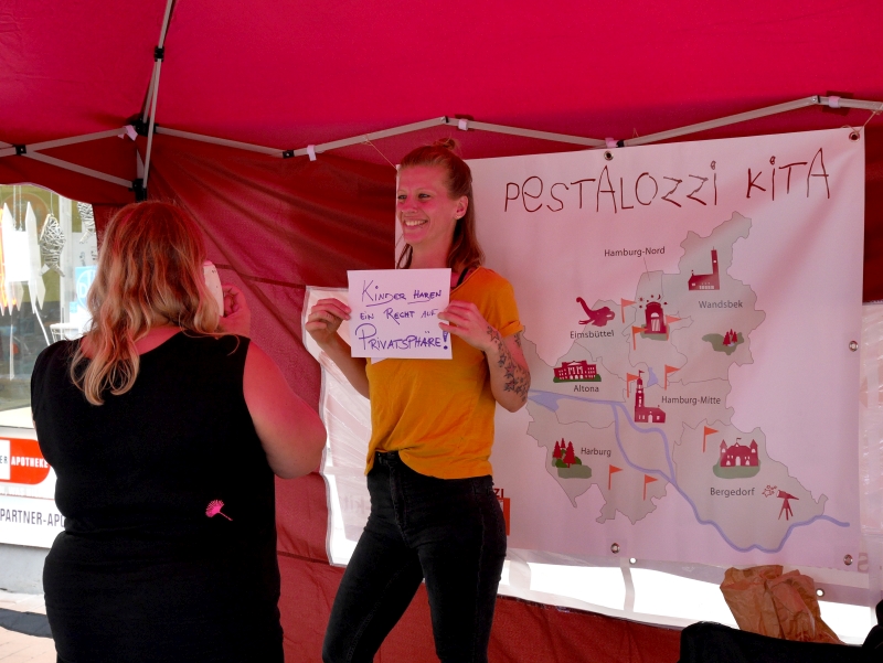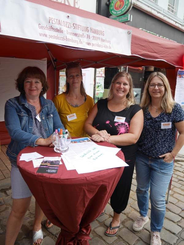 Wir haben über unsere acht Pestalozzi-Kitas informiert, über offene Stellen und über die Arbeitsmöglichkeiten bei uns. Dabei hatten wir gut zu tun und hoffen, bald einige neue Kolleginnen und Kollegen bei uns begrüßen zu dürfen! Auf der kleinen Hamburg-Karte von der Startseite unserer neuen Homepage konnten die Standorte gut nachvollzogen werden.