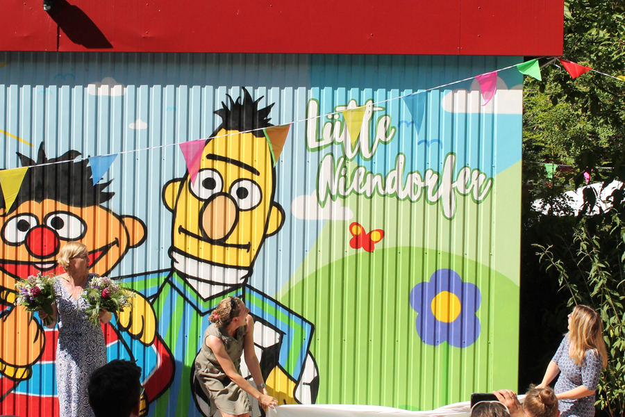 Burgunderweg in Niendorf ein tolles Sommerfest gefeiert. Sandra Schmücker, die Bereichsleitung der Pestalozzi-Kitas, weihte dabei zusammen mit Julia Böddeker (Kita-Leitung) und Susanne Loock (stellvertretende Leitung) den neuen Namen der Kita ein. Auf dem farbenfrohen Schriftzug, der von „Kita-Vater“ Stefan Bothe gestaltet wurde, ist er zu lesen: „Lütte Niendorfer“.