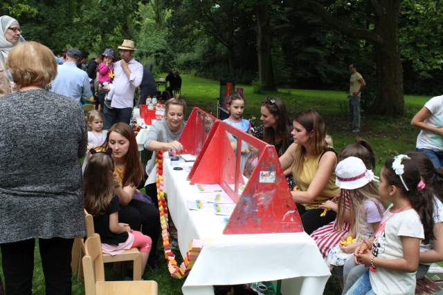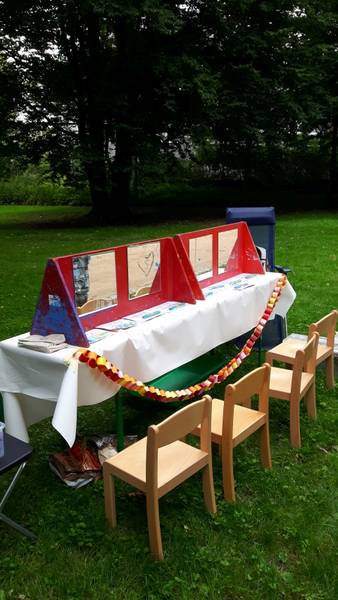 Das Ergebnis mehrerer Vorbereitungstreffen war ein wunderschönes Fest mit Aufführungen der Kinder, verschiedenen Spielen, einem Glücksrad und einer Rollenrutsche (die nicht nur den Kindern viel Spaß machte). Sogar das Wetter spielte an diesem Tag mit.